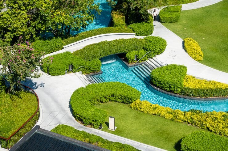 Plant and turf selections are matched to site conditions, usage, and maintenance expectations. The goal is a green space that establishes well, matures evenly, and complements the structural landscaping around it.